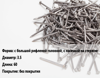 Гвоздь с большой рифленой головкой, с насечкой на стержне 3.5х60 без покрытия