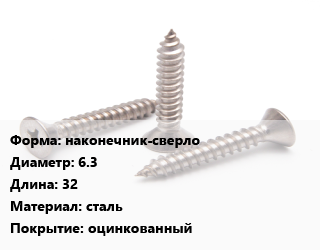 Саморез наконечник-сверло D=6.3 L=32 сталь оцинкованный
