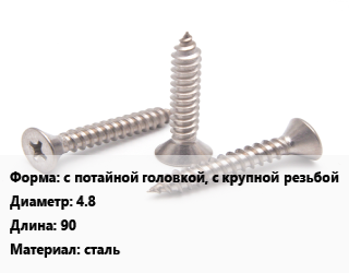Саморез с потайной головкой, с крупной резьбой D=4.8 L=90 сталь
