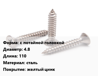 Саморез с потайной головкой D=4.8 L=110 сталь желтый цинк