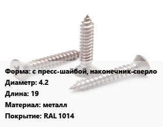 Саморез с пресс-шайбой, наконечник-сверло D=4.2 L=19 металл RAL 1014, шт цена По запросу где купить, условия доставки в Луганске и Луганской области