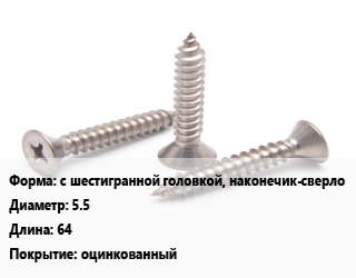 Саморез с шестигранной головкой, наконечик-сверло D=5.5 L=64 оцинкованный, кг цена от 1 449 ₽ / кг, где купить, условия доставки в Луганске и Луганской области
