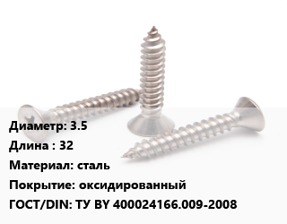 Саморез 3.5 L=32 сталь оксидированный ГОСТ: ТУ BY 400024166.009-2008