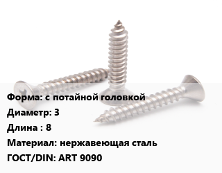 Саморез с потайной головкой D=3 L=8 нержавеющая сталь ГОСТ: ART 9090, упаковка 10000 шт цена от 1 668 ₽ / кг, где купить, условия доставки в Луганске и Луганской области