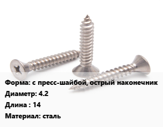 Саморез с пресс-шайбой, острый наконечник D=4.2 L=14 сталь