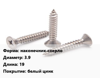 Саморез наконечник-сверло D=3.9 L=19 белый цинк