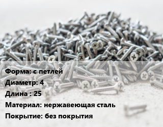 Шуруп с петлей 4х25 нержавеющая сталь без покрытия, упаковка 500 шт цена По запросу где купить, условия доставки в Луганске и Луганской области