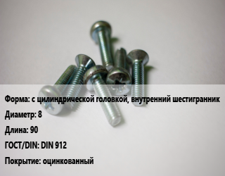 Винт с цилиндрической головкой, внутренний шестигранник 8х90 DIN 912 оцинкованный, 8.8, цена за 1000 шт, кг цена от 43.65 ₽ / кг, где купить, условия доставки в Луганске и Луганской области