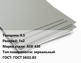 Лист нержавеющий 0.5 1х2 Сталь: AISI 430 Тип:зеркальный ГОСТ 5632-83