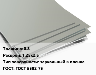 Лист нержавеющий 0.8 1.25х2.5 Тип:зеркальный в пленке ГОСТ 5582-75