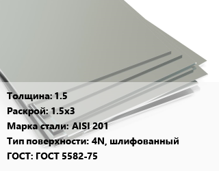 Лист нержавеющий 1.5 1.5х3 Сталь: AISI 201 Тип:4N, шлифованный ГОСТ 5582-75, шт, в пленке цена от 10 336 ₽ / т, где купить, условия доставки в Луганске и Луганской области